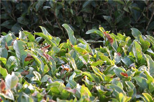 | ▲ 햇살에 반짝이는 한겨울의 찻잎 [사진/전수영 기자] |