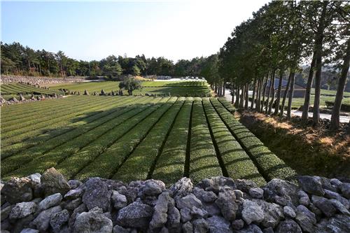 | ▲ 돌담과 차밭이 어우러진 서귀다원 [사진/전수영 기자] |