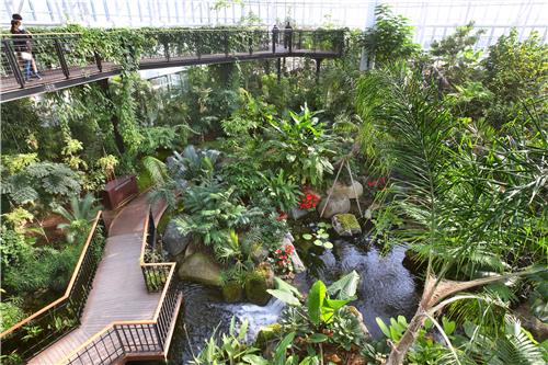 온실 내부에는 높이 5.5m의 데크길이 설치되어 있어 키 큰 나무들을 가까이에서 관찰할 수 있다.