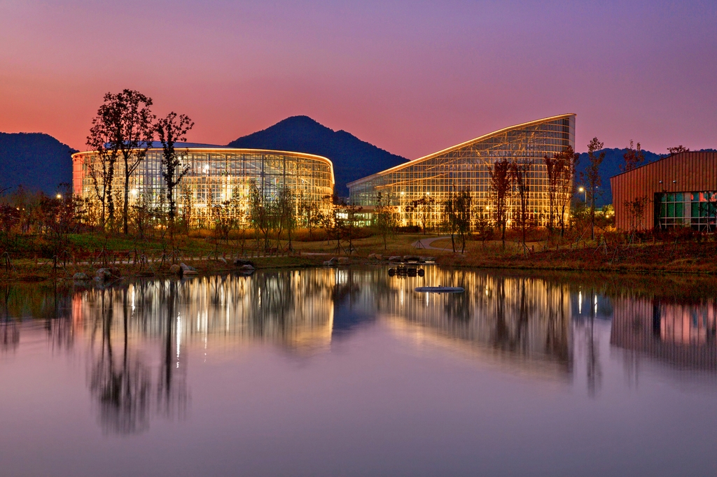 | ▲ 해 질 녘 호수에 비친 사계절전시온실의 풍경 [(c)2020.한국수목원관리원, 우승민 정원사진가 All rights reserved] |
