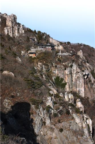 | ▲ 금산 동쪽 전망대에서 바라본 상사암 [사진/전수영 기자] |