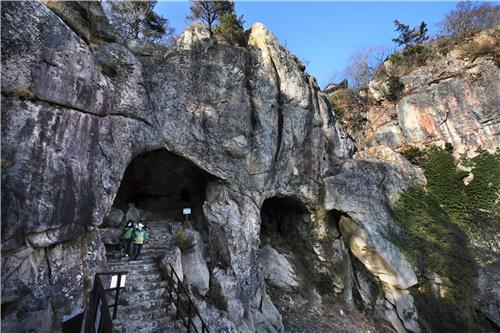 | ▲ 금산의 관문인 쌍홍문. 원효대사가 '두 개의 굴이 쌍무지개 같다'고 해서 쌍홍문이라 불렀다. [사진/전수영 기자] |