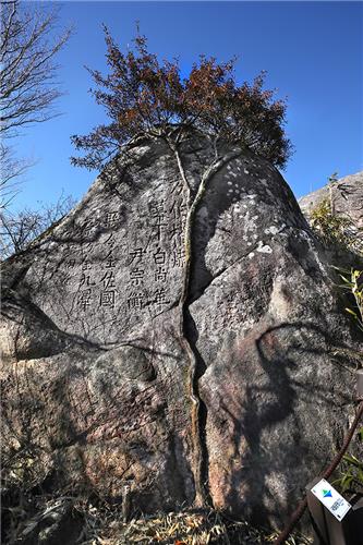 | ▲ 정상으로 가는 길목에 놓인 거대한 나막신 모양의 바위에는 조선 시대 유학자 주세붕의 친필이 새겨져 있어 문장암이라 불린다. [사진/전수영 기자] |