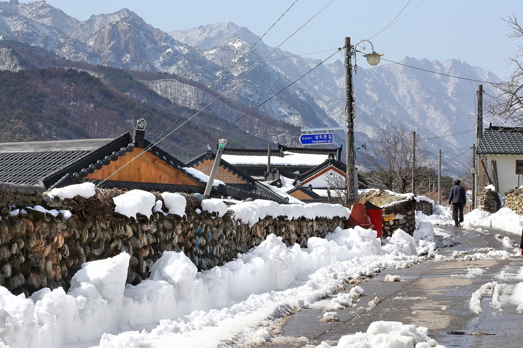 | ▲ 설악산을 병풍처럼 두른 상도문 돌담마을 [사진/전수영 기자] |