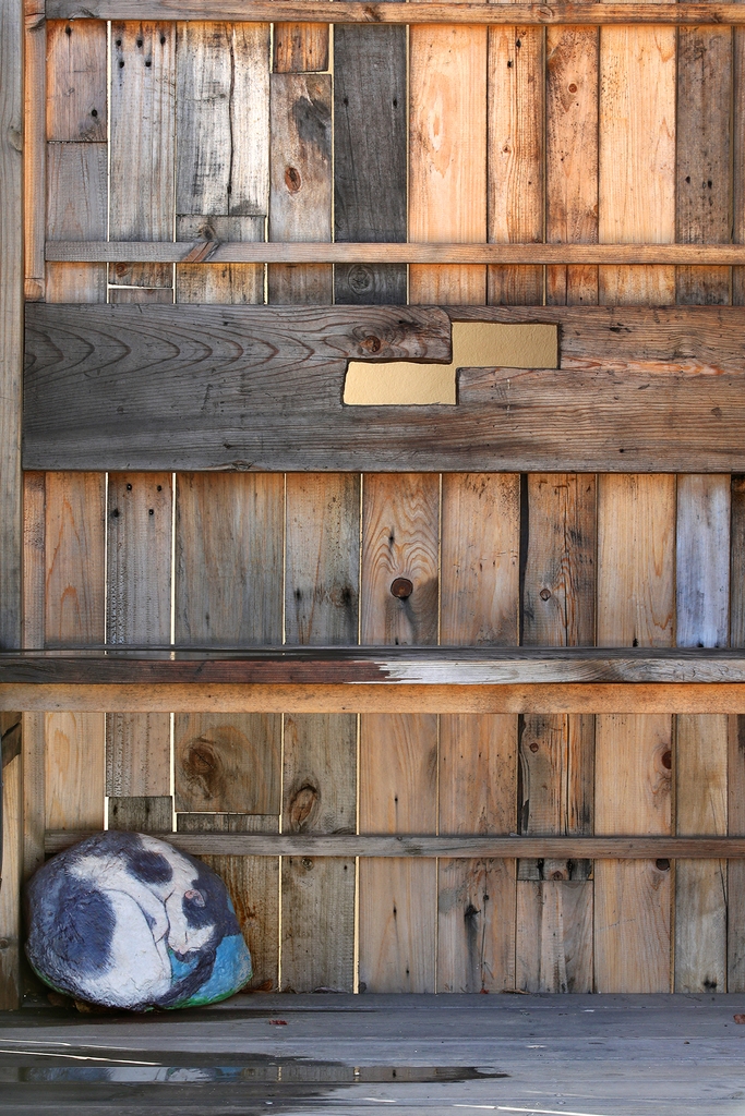 자갈에 정성껏 그려 넣은 참새와 부엉이가 돌담 위에서 지저귀고, 포동포동하게 살찐 고양이가 몸을 웅크리고 앉아 있다.
