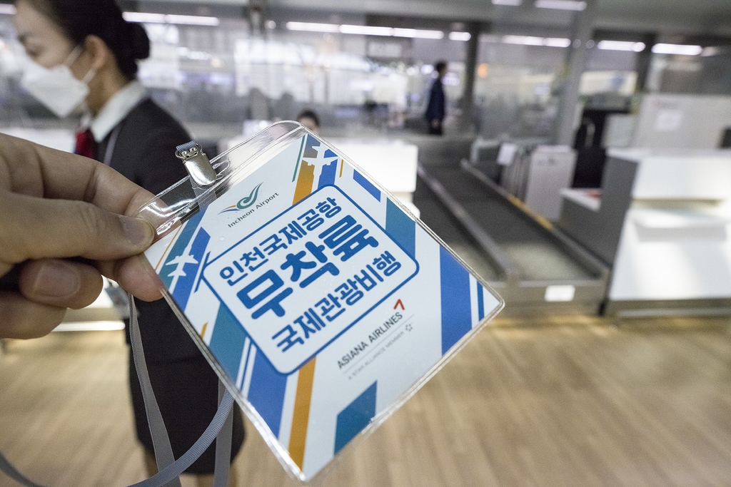 아시아나항공 카운터에서 여권을 제시하니 탑승권과 함께 '인천공항 무착륙 국제관광비행'이라는 문구가 든 명찰을 하나 준다.