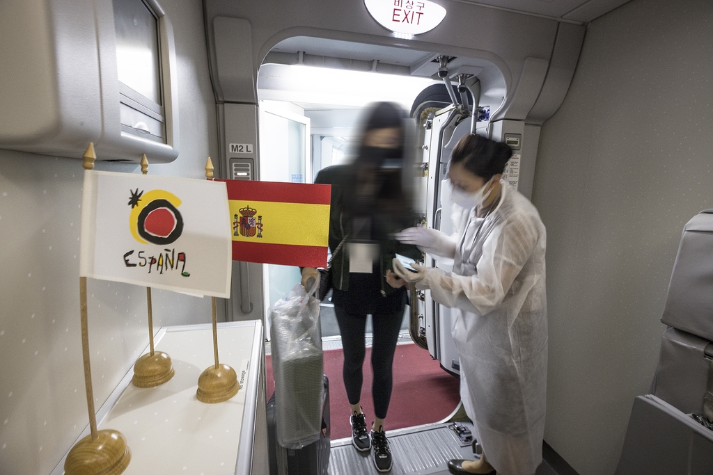 공연이 끝나자 승객들은 줄지어 비행기에 올랐다. 탑승객 전원에게 록시땅 어메니티 세트가 선물로 증정됐다. 스페인관광청은 선착순으로 로고백, 스카프, 수첩 등 스페인 기념품도 나눠줬다.