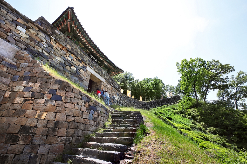 서쪽 문루인 금서루는 복원된 것이지만 조선 시대 성문의 양식을 잘 보여준다. 금서루 주변을 비롯해 성벽 곳곳에는 노란색 깃발이 꽂혀 있었다.