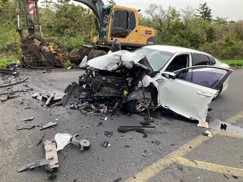| ▲ 4월 1일 오설록 인근 렌터카 굴착기 충돌 사고 현장 [제주소방안전본부 제공. 재판매 및 DB 금지] |