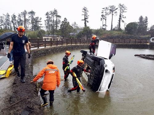 | ▲ 지난 3월 제주시 애월읍 어음리 연못 렌터카 추락사고 [제주소방안전본부 제공. 재판매 및 DB 금지] |