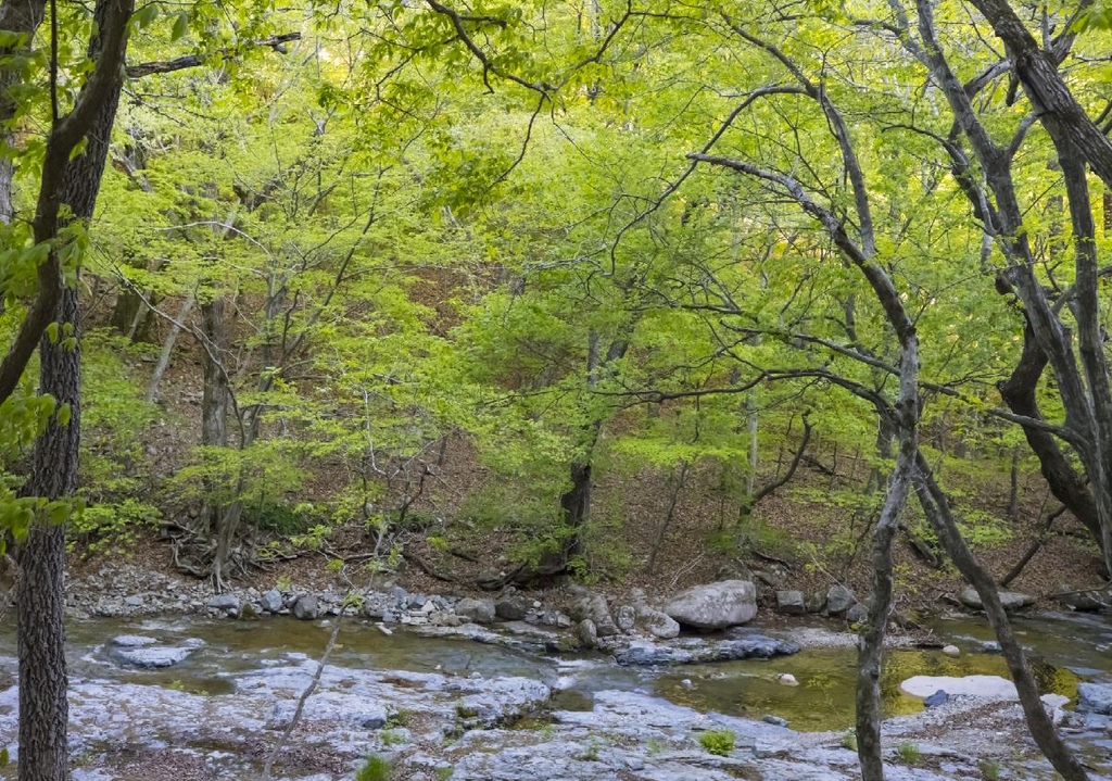 어디 숲이 우거진 곳이 한두 군데겠냐만 이곳처럼 녹색의 바다에 흠뻑 빠진 듯한 느낌을 주는 곳은 많지 않다. 숲 바로 옆에 자리 잡은 깊은 계곡도 청정하고 한없이 맑다.