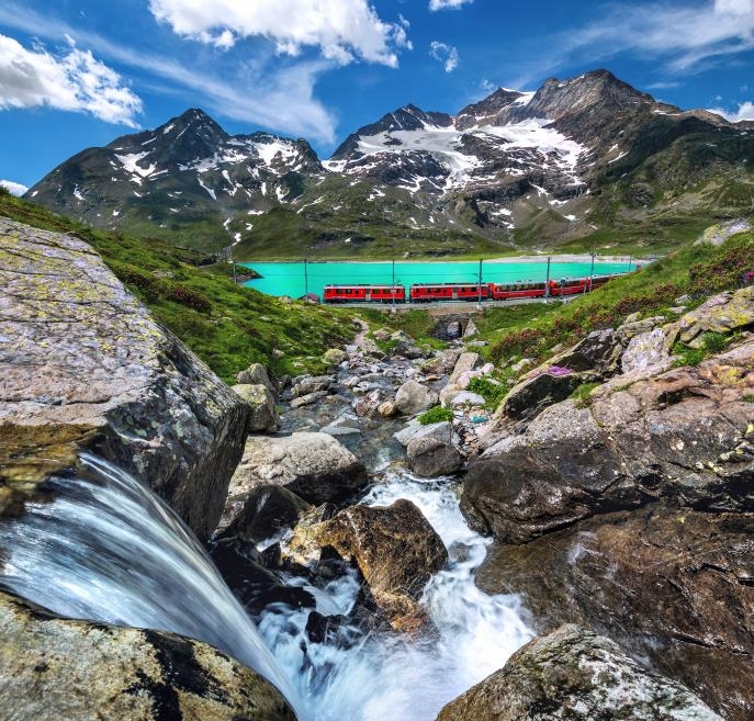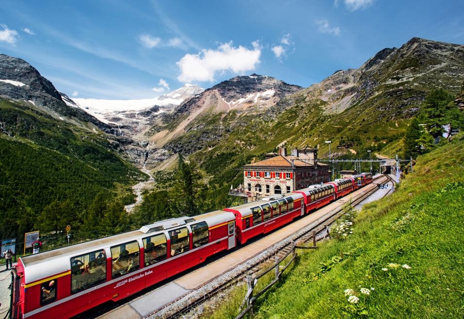 베르니나 특급(Bernina Express)은 만년설이 있는 엥가딘(Egadine) 계곡과 스위스 남쪽의 이탈리아 풍경을 동시에 만끽할 수 있는 기차다.