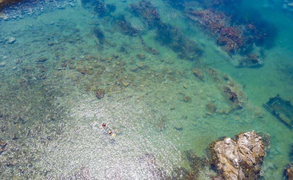 평일이었지만 투명카누를 타기 위한 줄이 길게 늘어서 있고, 바다에는 카누 10여 대가 떠 있었다.