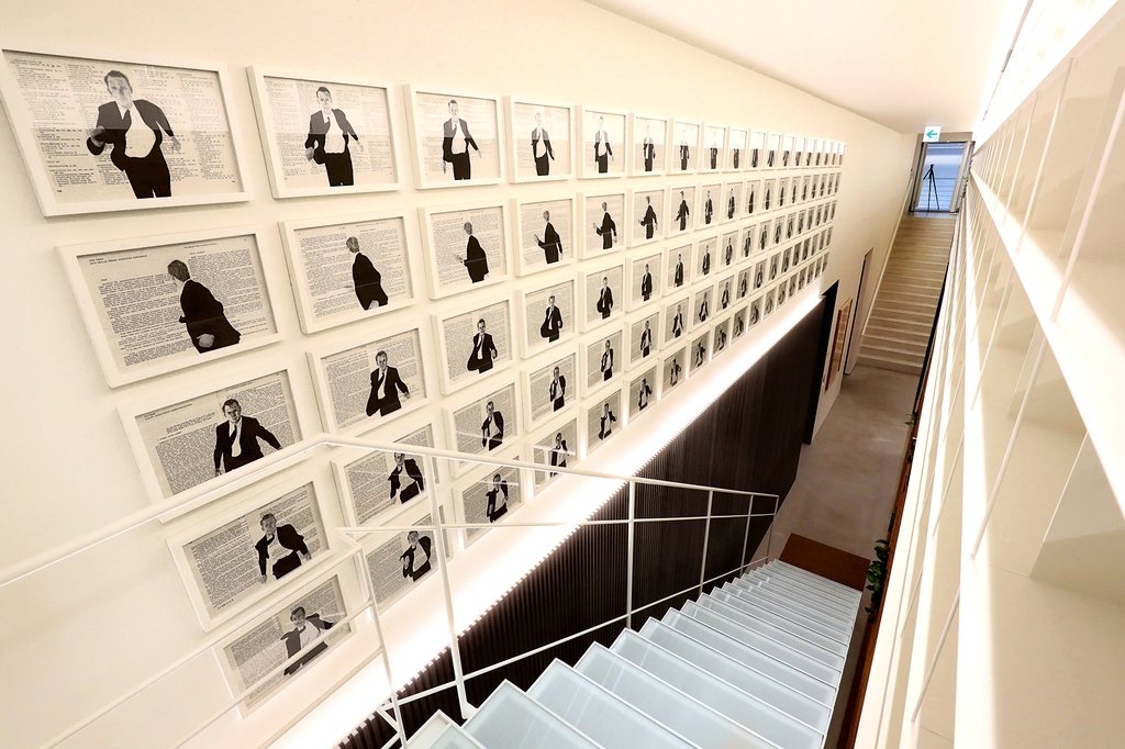 프랜시스 베이컨의 판화 '오이디푸스와 스핑크스', 팀 아이텔의 '독서하는 화가', 리엄 길릭의 수식 시트 작업 'Process Friction Canopy Mirrored' 등 세계적으로 유명한 작가들의 작품이 곳곳에 걸려 있다.