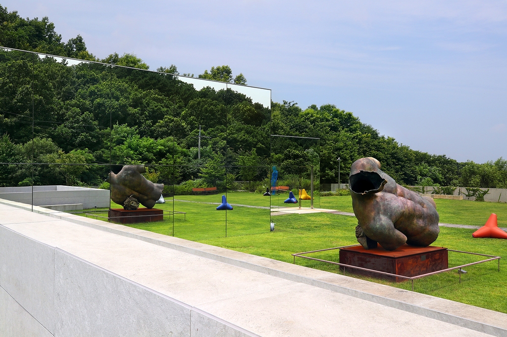 | ▲ 건물 외벽 거울에 비친 자연과 예술품이 조화를 이루는 미러가든 [사진/전수영 기자] |