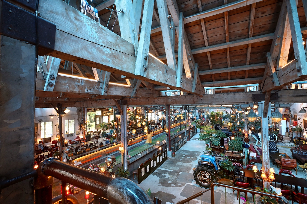 16세기 영국에서 썼던 위스키 증류기, 1800년대 독일에서 만들어진 영사기, 미국에서 건너온 1920년대 모시모시 전화기처럼 그 어디서도 보기 힘든 진기한 물건들을 구경하며 2천 평(6,611㎡)에 달하는 카페 내외부를 둘러보다 보면 시간이 훌쩍 지나간다.