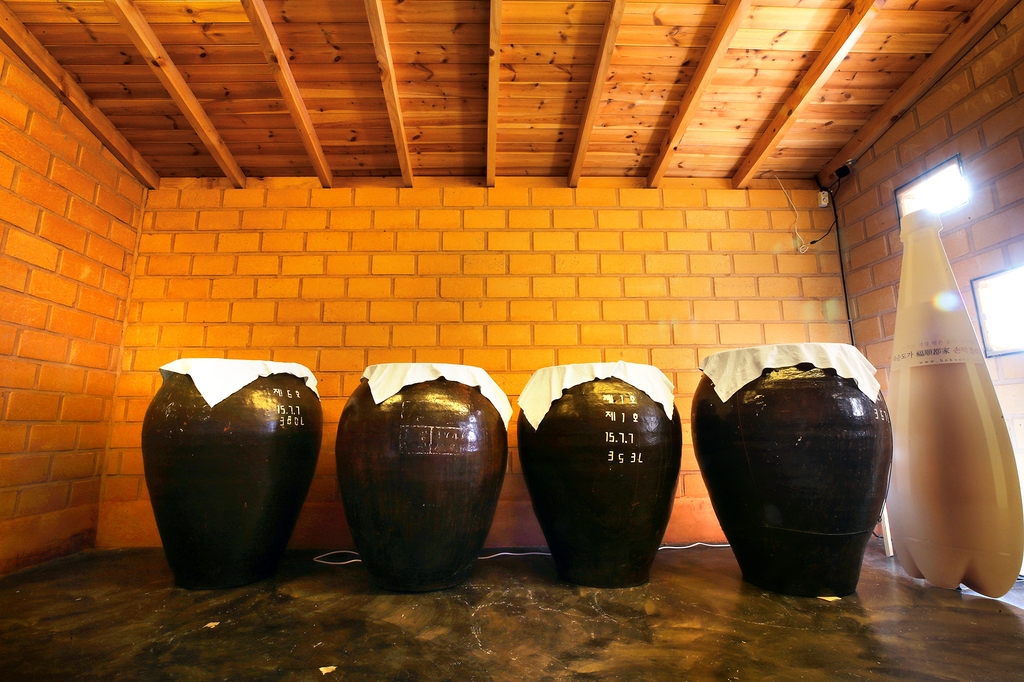 복순도가는 국내산 밀로 직접 띄운 누룩과 이 지역에서 재배한 쌀로 술을 빚어 옹기 항아리에서 발효하는 전통 방식을 고집하고 있다.