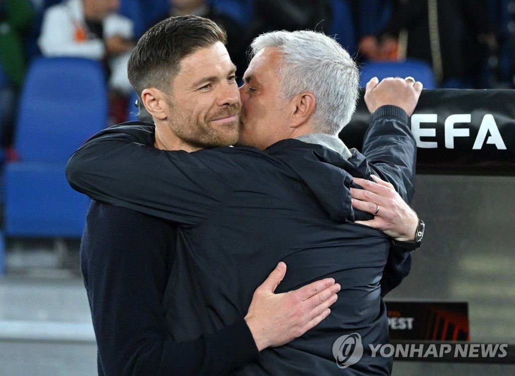 | ▲ 포옹하는 사비 알론소 레버쿠젠 감독과 조제 모리뉴 AS로마 감독 [EPA=연합뉴스] |