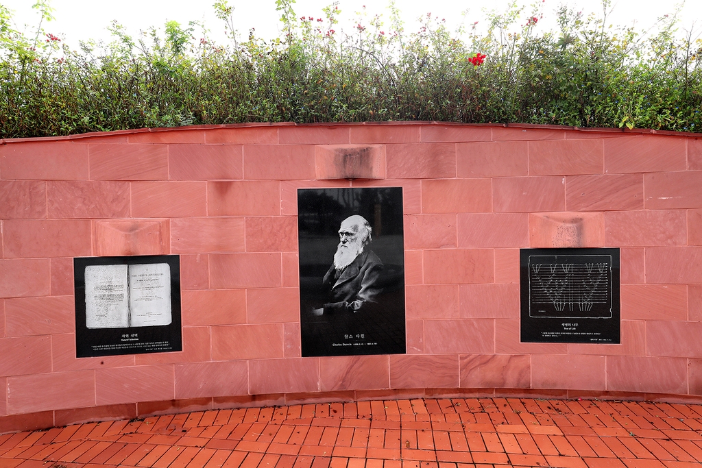 | ▲ 찰스 다윈 길 입구의 다윈벽 [사진/조보희 기자] |