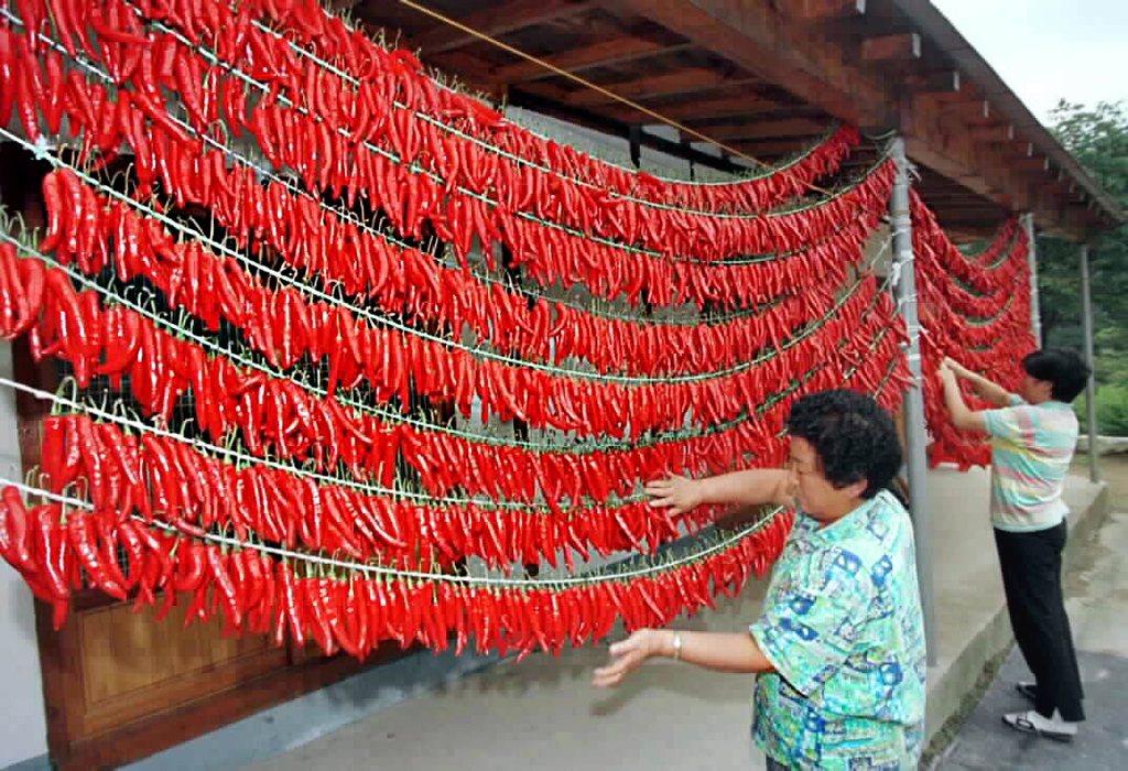 | ▲ 강릉에서 고추를 처마에 매달아 말리고 있다. 1999년 [연합뉴스 자료사진] |