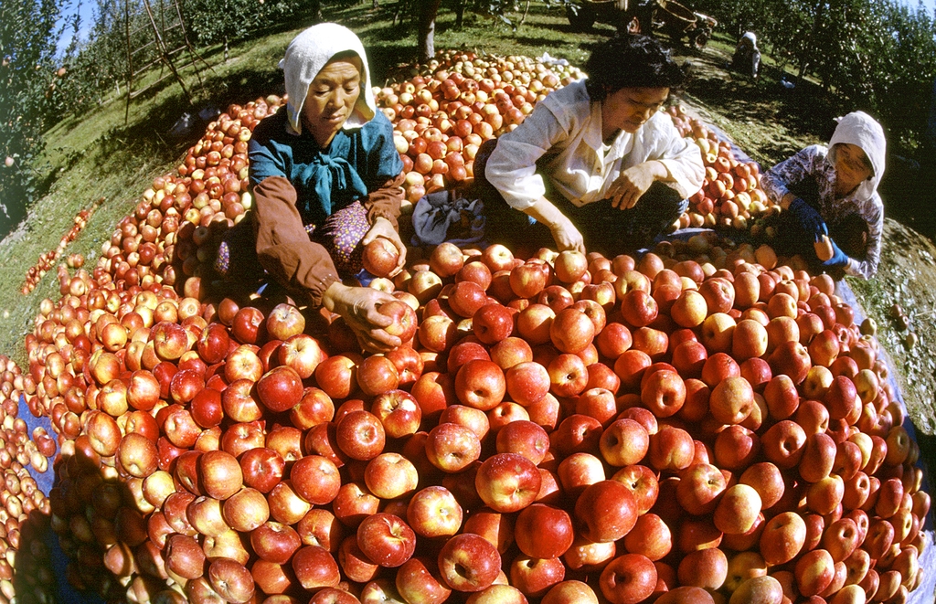 | ▲ 대구사과로 유명했던 경산 과수원에서 사과 수확을 하고 있다. 지금은 온난화로 사과 주산지도 북상했다. 1988년 [연합뉴스 자료사진] |