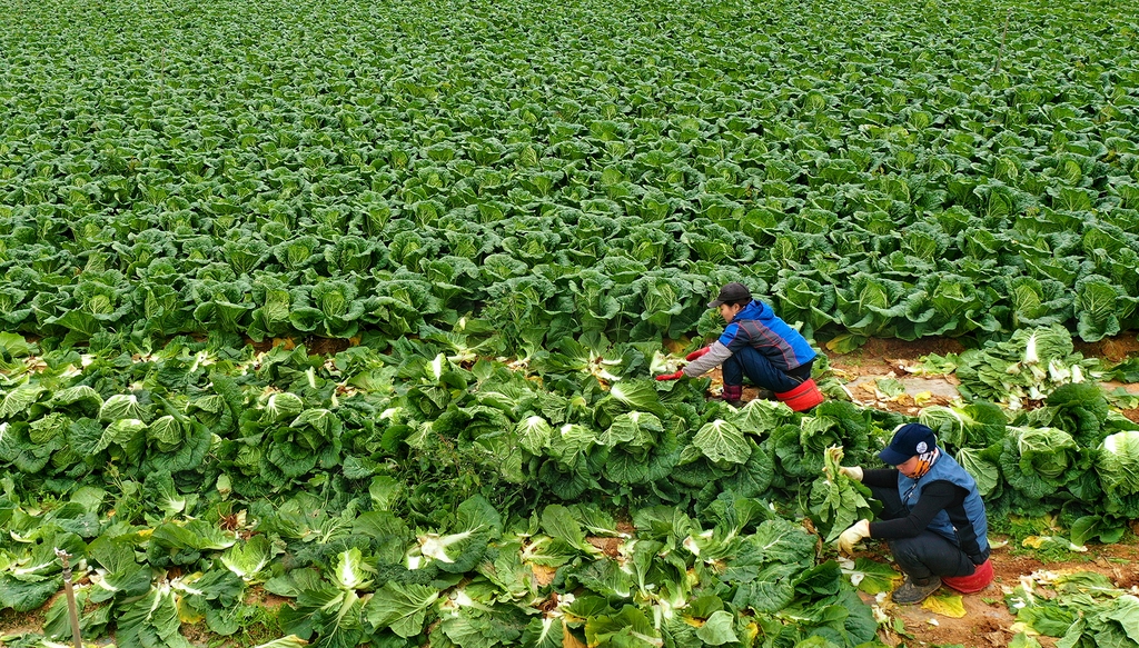 | ▲ 전남 해남에서 김장배추를 수확하고 있다. 2020년 [연합뉴스 자료사진] |