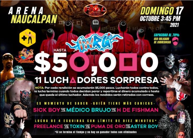 루차 리브레 단체 중 한 곳인 IWRG는 오는 17일 경기 포스터에 '오징어 게임' 이미지를 활용했다.