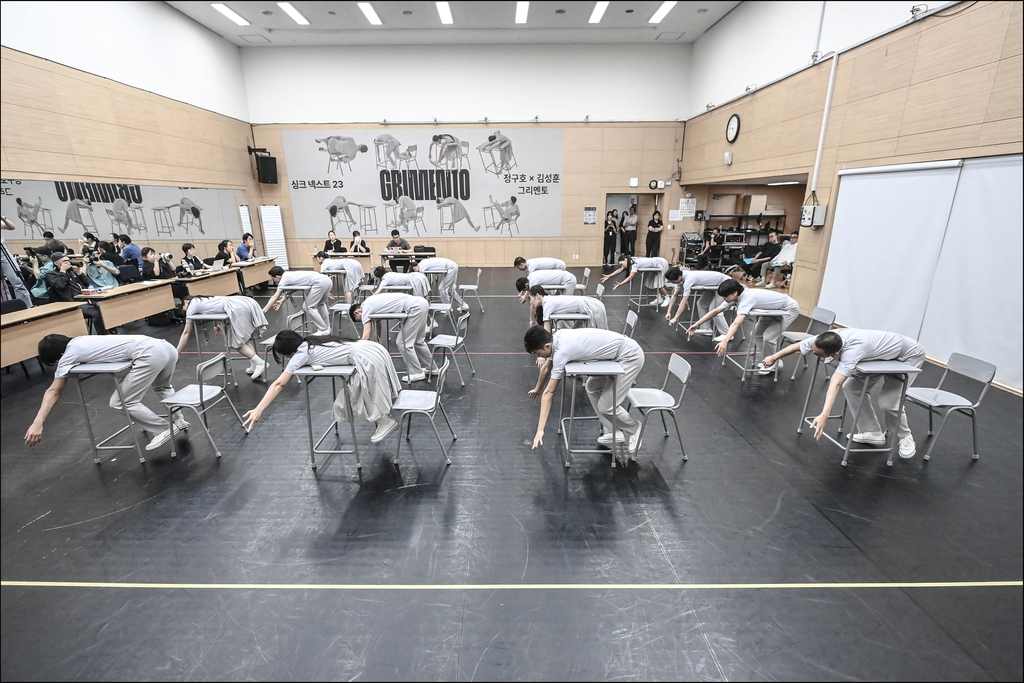지난 25일 서울 세종문화회관 예술동에서 열린 연습실 공개 행사에서 무용 '그리멘토'(GRIMENTO)는 학교폭력의 가해자와 피해자가 공존하는 교실의 긴장감을 실감 나게 묘사했다.
