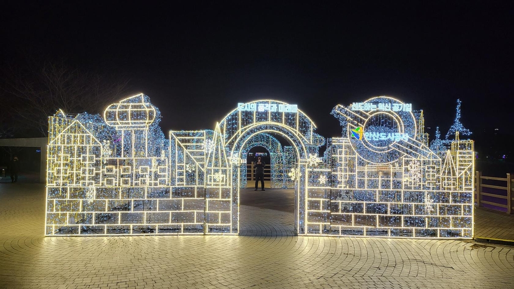 (안산=연합뉴스) 김인유 기자 = 경기 안산시의 대표적인 휴식처인 화랑유원지에 일루미네이션(조명장식) 조형물이 설치돼 새로운 포토 명소로 떠오르고 있다.