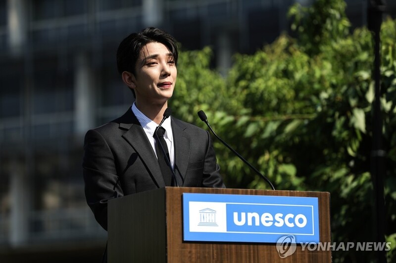 "We are humbled and overwhelmed to stand before you for the first time as UNESCO's Goodwill Ambassador for Youth," Seventeen member Joshua said in an acceptance speech he delivered on behalf of the 13-piece group.
