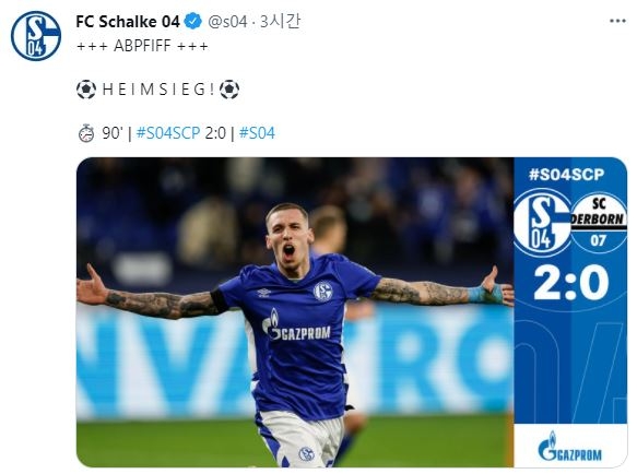 샬케는 19일 오전(한국시간) 독일 겔젠키르헨의 펠틴스 아레나에서 열린 파더보른과 2021-2022 2부 분데스리가 23라운드 홈 경기에서 2-0으로 이겼다.