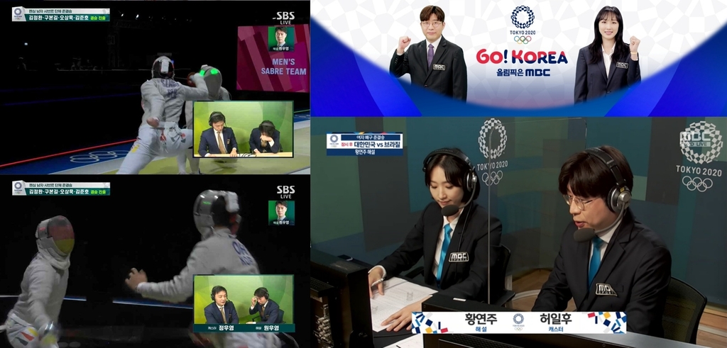 | ▲ 2020 도쿄올림픽 펜싱 남자 사브르 SBS 중계(왼쪽)와 여자 배구 MBC 중계(오른쪽) [각 방송사 제공. 재판매 및 DB 금지] |