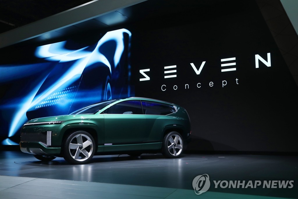 현대차는 지난해 11월 미국 로스앤젤레스 오토쇼에서 처음 공개한 대형 전기 스포츠유틸리티차(SUV) 콘셉트카 '세븐'(Seven)도 전시한다.