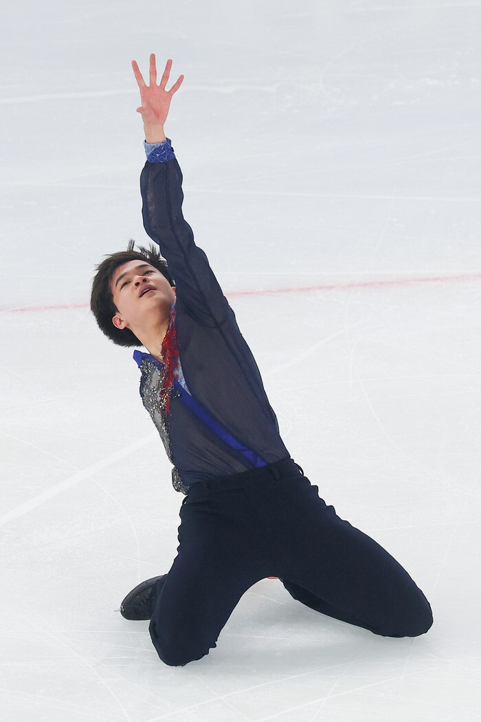 Kim Hyun-gyeom of South Korea performs in the men's singles free program at the Asian Winter Games at Heilongjiang Ice Events Training Center Multifunctional Hall in Harbin, China, on Feb. 11, 2025. (Yonhap)