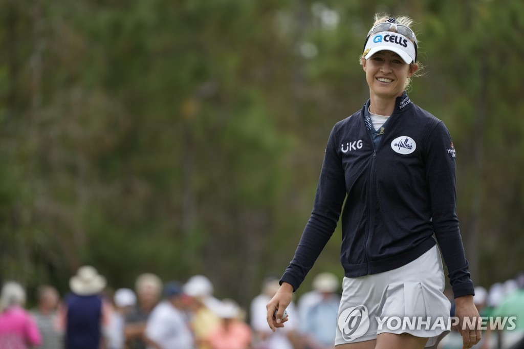| ▲ 1번 홀 그린에서 미소 짓는 넬리 코다 [AP=연합뉴스] |