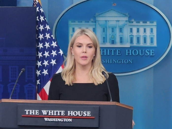 White House press secretary Karoline Leavitt attends a press conference at the White House in Washington on June 19, 2025. (Yonhap)