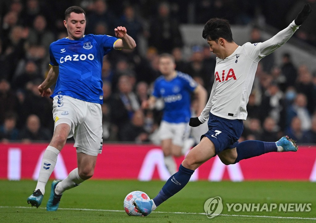 Son netted his 11th goal of the 2021-2022 campaign in a 5-0 rout over Everton at Tottenham Hotspur Stadium in London on Monday (local time).