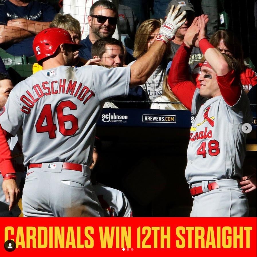 | ▲ 세인트루이스 파죽의 12연승 [MLB 인스타그램 캡처. 재판매 및 DB 금지] |