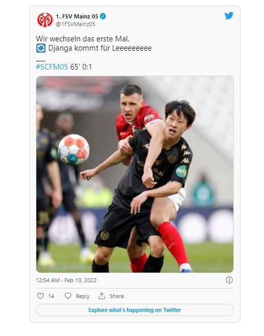 마인츠와 프라이부르크는 13일 오전(한국시간) 독일 프라이부르크의 유로파 파크 슈타디온에서 끝난 2021-2022 독일 분데스리가 22라운드 경기에서 1-1로 비겼다.
