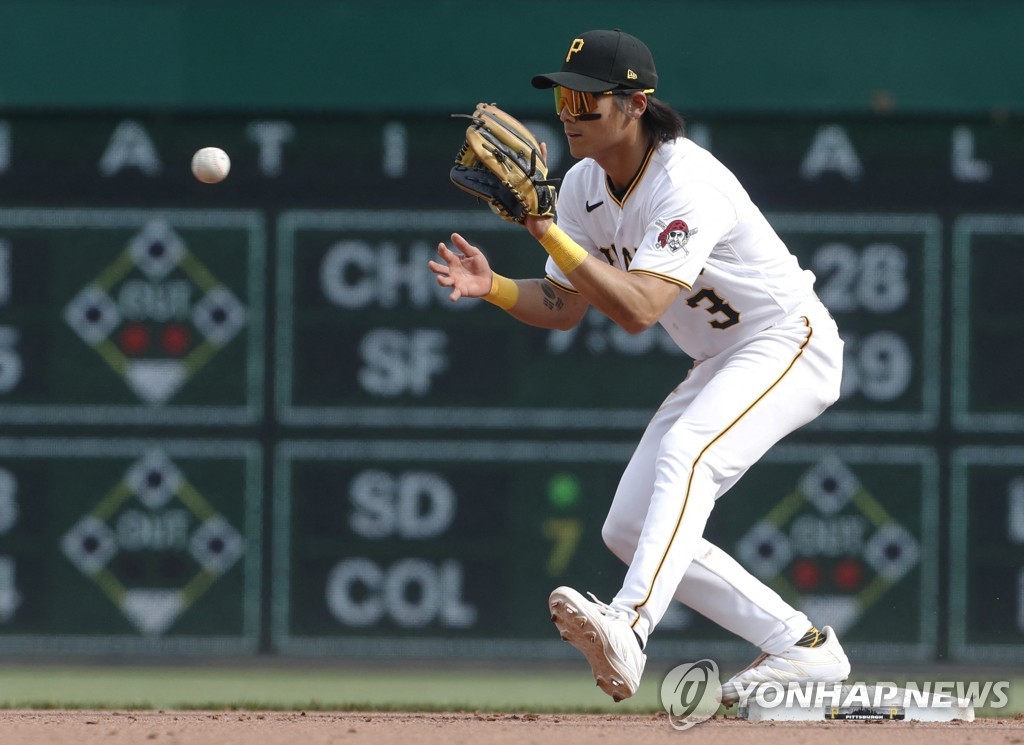 | ▲ 2루에서 송구받는 배지환 [USA 투데이/로이터=연합뉴스] |