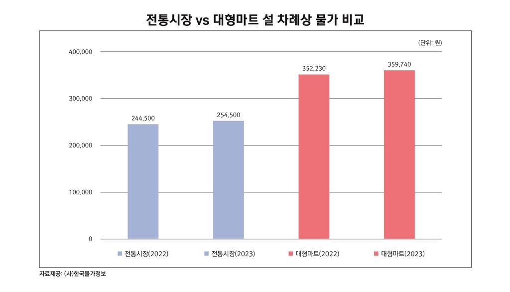 대형마트를 이용하면 35만9천740원이 필요해 지난해 설 때보다 2.1% 증가한 것으로 나타났다.