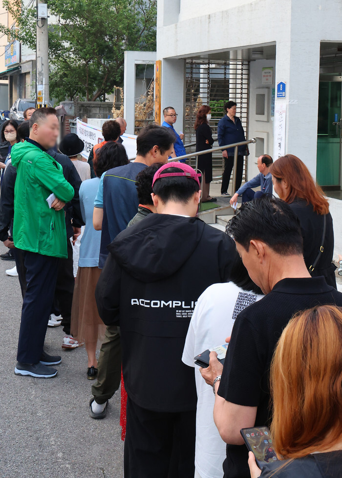 Voters queue to cast their ballots in the presidential election at a polling station in Incheon, west of Seoul, on June 3, 2025. (Yonhap)