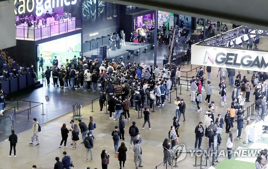 | ▲ 게임전시회 구름 관람객 (부산=연합뉴스) 강덕철 기자 = 18일 오전 부산 벡스코에서 국제게임전시회' 지스타(G-STAR) 2021'이 열리고 있다. 코로나19 여파로 2년 만에 오프라인으로 개최된 지스타는 올해 온라인 참가를 포함해 40개국 672개사가 1천393개 부스를 운영한다. 2021.11.18 kangdcc@yna.co.kr |