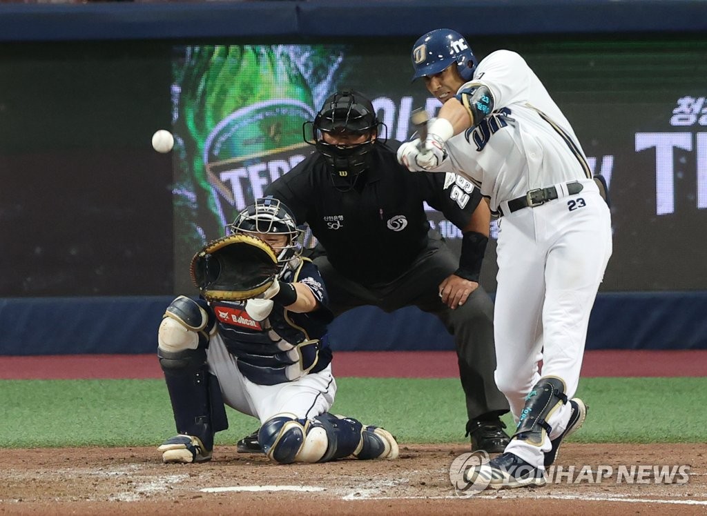 ▲ In this file photo from Nov. 24, 2020, Aaron Altherr of the NC Dinos hits a double against the Doosan Bears in the bottom of the sixth inning of Game 6 of the Korean Series at Gocheok Sky Dome in Seoul. (Yonhap)