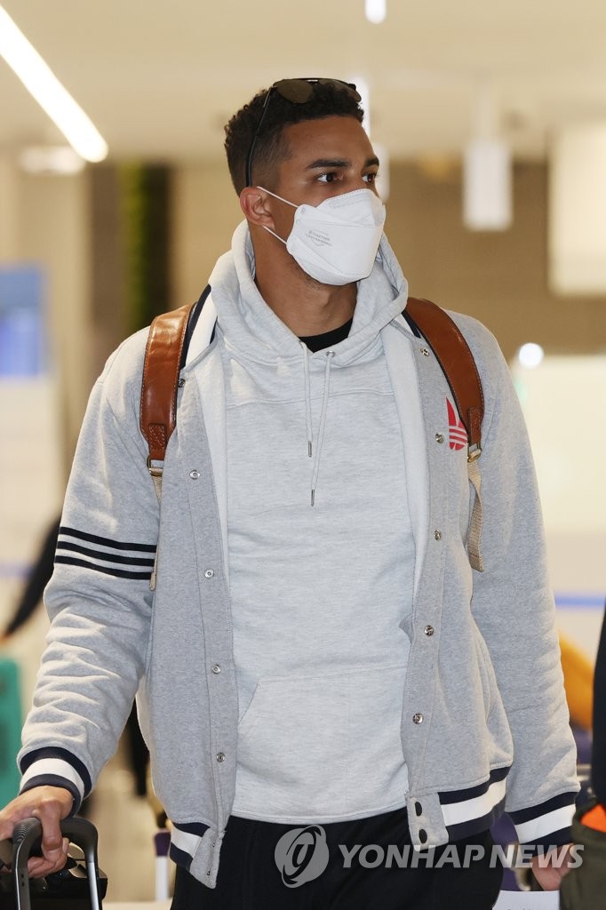 ▲ In this file photo from Jan. 16, 2021, Aaron Altherr of the NC Dinos leaves Incheon International Airport in Incheon, just west of Seoul, after arriving from the United States. (Yonhap)