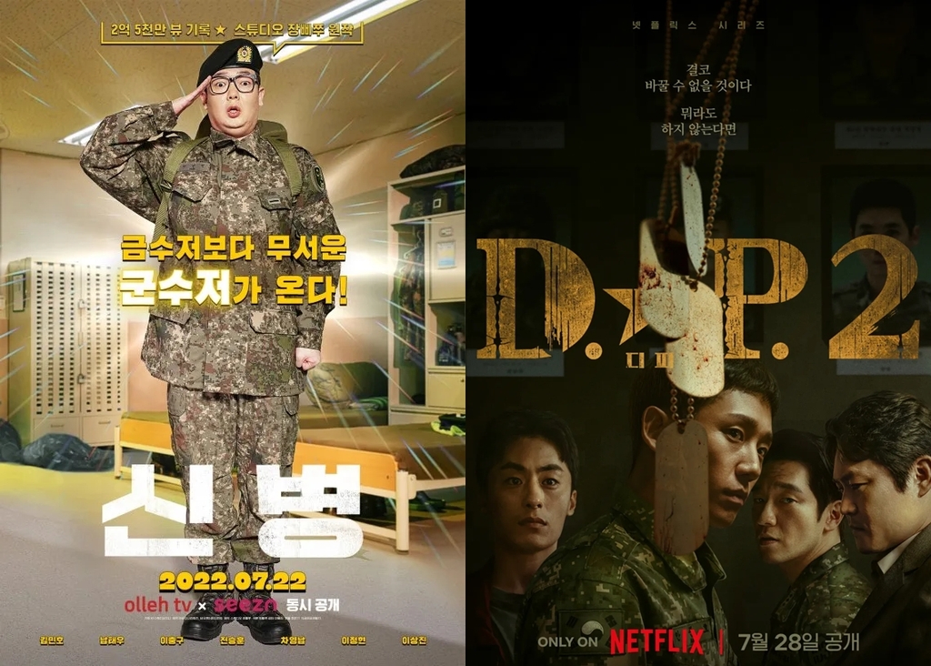 (서울=연합뉴스) 황재하 기자 = 사단장 아버지를 둔 '군수저' 병사의 군 생활을 다룬 '신병', 각종 사연을 품고 탈영한 군인들을 쫓는 헌병의 이야기 'D.P.'.
