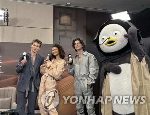 | ▲ 티모테 샬라메 초대한 '자이언트 펭TV' (서울=연합뉴스) 배급사 워너브러더스는 영화 '듄: 파트2' 주연 배우들의 인터뷰 영상이 오는 29일 '자이언트 펭TV' 유튜브에 공개된다고 28일 밝혔다. '자이언트 펭TV' 영상에서는 EBS 대표 캐릭터 펭수가 진행자로 나서 티모테 샬라메, 젠데이아, 오스틴 버틀러 등을 인터뷰한다. 2024.2.28 [워너브라더스 제공. 재판매 및 DB 금지] photo@yna.co.kr |