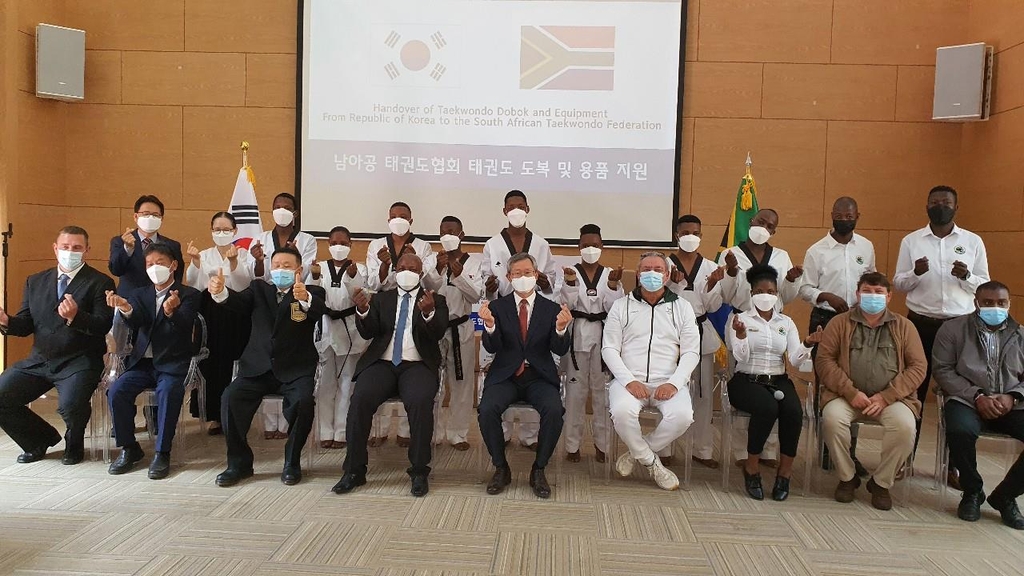남아공 태권도협회 도복·용품 기증식서 선봬…파리 올림픽서 선전 다짐