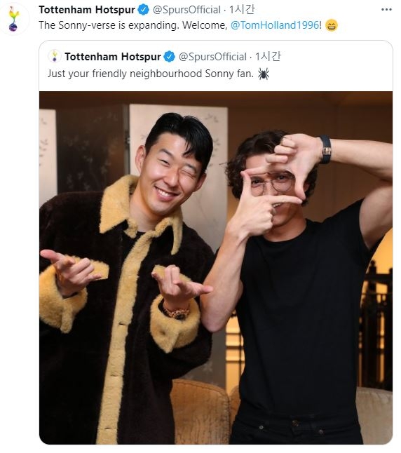 토트넘은 손흥민과 홀랜드가 함께 있는 사진을 구단 SNS에 게시하며 "'쏘니-버스'(Sonny-verse·손흥민의 애칭 'Sonny'와 'universe'를 합한 말)가 확장하고 있다. 환영해요, 홀랜드"라는 문구를 곁들였다.