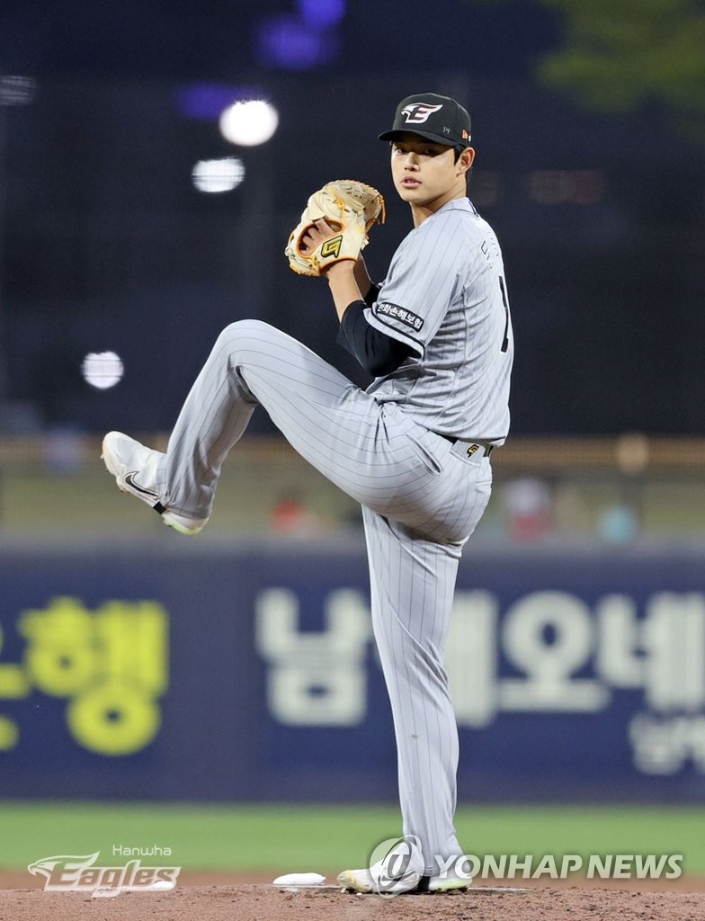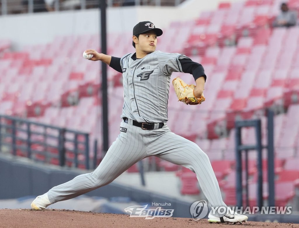 | ▲ Hanwha Eagles starter Moon Dong-ju pitches against the Kia Tigers during a Korea Baseball Organization regular season game at Gwangju-Kia Champions Field in Gwangju, some 270 kilometers south of Seoul, on April 12, 2023, in this photo provided by the Eagles. (PHOTO NOT FOR SALE) (Yonhap) |